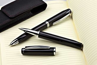 - ручка с поворотным механизмом, стержень синий, заменяемый;
