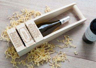 Стильная и удобная коробка для вина, изготовлена из цельного дерева, открытая конструкция коробки объединяет внешний вид бутылки с красотой деревянной упаковки, получая единый и гармоничный подарок. Лазерная гравировка по дереву, делает подарок персональным.