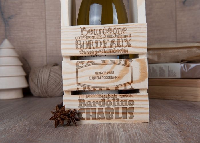 - Коробка из дерева для бутылки вина;