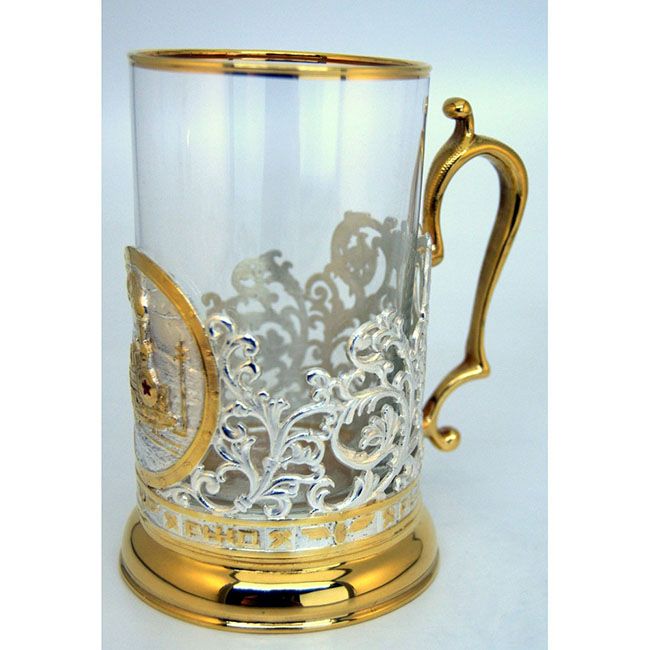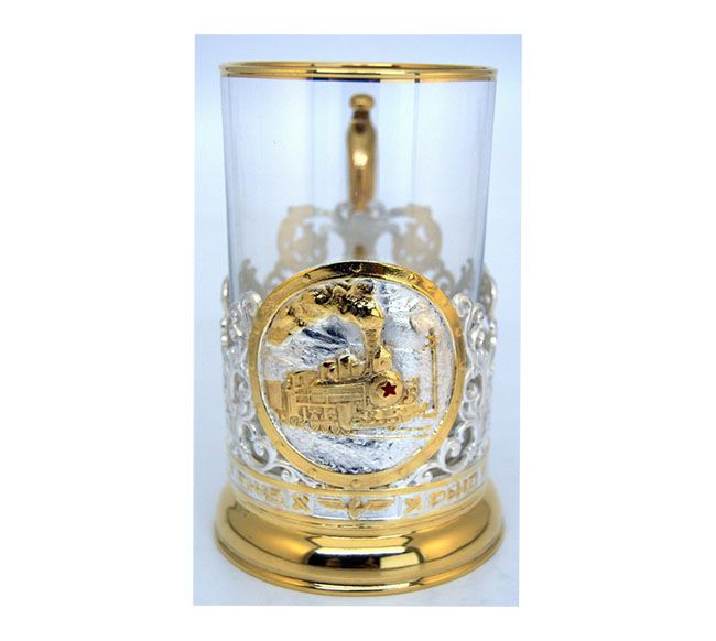 - Латунный подстаканник "Подстаканник для железнодорожника" с золочением;